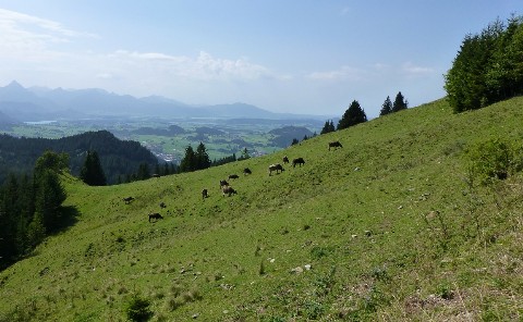 Eine Besonderheit der attraktiven Wohnlage ist der Forggensee in nur unmittelbarer Nähe gelegen. Schloß Neuschwanstein und Schloss Hohenschwangau befinden sich im 2 km entfernten Ortsteil Hohenschwangau. Diese errechen Sie bequem zu Fuß von der Unterkunft aus. Zudem wohnen Sie am Fuße des Tegelbergs. Auch diesen erreichen Sie nach ca. 2,5 km Entfernung. Von dort aus lassen sich unzählige Wandertouren unternehmen. Im Winter bietet der Tegelberg mit seinen Skiabfahrten, Skiliften, Rodelbahnen und Langlaufrundloipen auch viel für Skisportler. Flutlicht erlaubt auch ein abendliches Ski- und Langlaufvergnügen. Das Langlaufen lässt sich aber auch direkt von der Haustüre aus starten (50m). Die Ausgangslage dieses Feriendomizils für Unternehmungen unterschiedlichster Art ist Sommer wie Winter ausgezeichnet. Im Sommer lockt natürlich der Forggensee direkt vor der Haustüre, sowie viele weitere wunderschöne Seen in der Umgebung (Hopfensee, Weissensee, Alatsee, u.vm.). Eine Bushaltestelle befindet sich fußläufig in 100m Entfernung. Das Zentrum, die Gästeinformation, Einkaufsmöglichkeiten und Apotheken erreichen Sie auch bequem zu Fuß in 1 km. Für Wellnessbegeiterte ist der Besuch der königlichen Kristalltherme in Schwangau ein Muss! Die Nachbarstadt Füssen mit seiner hübschen Altstadt, Kloster St. Mang und dem Hohen Schloss erreichen Sie nach kurzer Autofahrt oder nach einem ca. 40-Minütigen Spaziergang entlang des Forggenseeufers.